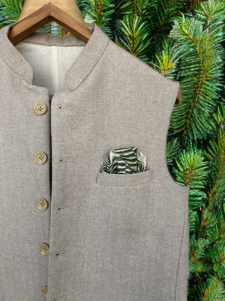 Style Tip: Pairs beautifully with beige, cream, black and olive suits for a subtle yet sophisticated touch. Goes well on a light toned Nehru Jacket too.