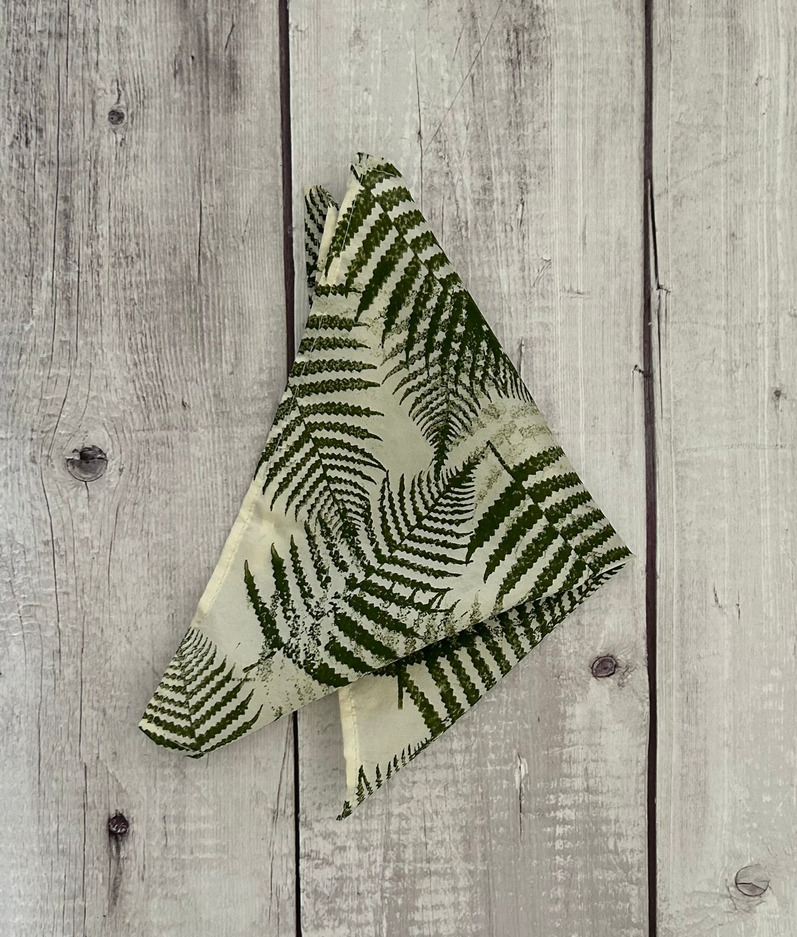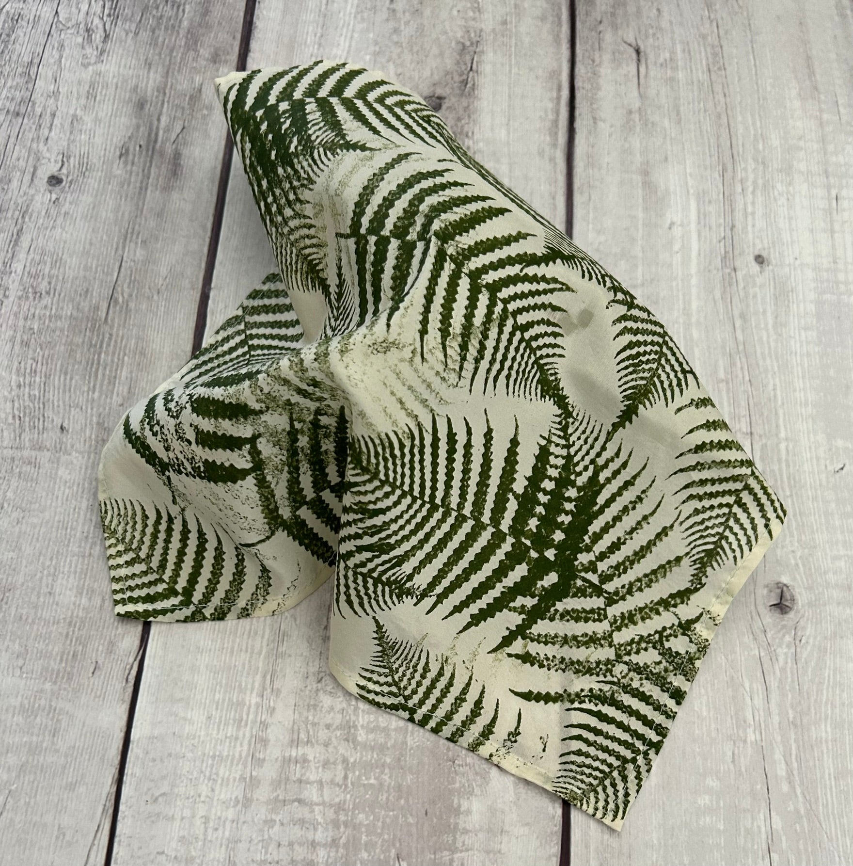 A breath of fresh air! Understated yet refined, this pastel green silk pocket square features scattered olive green fern leaves, delicately block printed to create a timeless, nature-inspired design. The contrast of the deep green ferns against the soft pastel base adds a touch of classic minimalism, making it a versatile addition to any wardrobe.