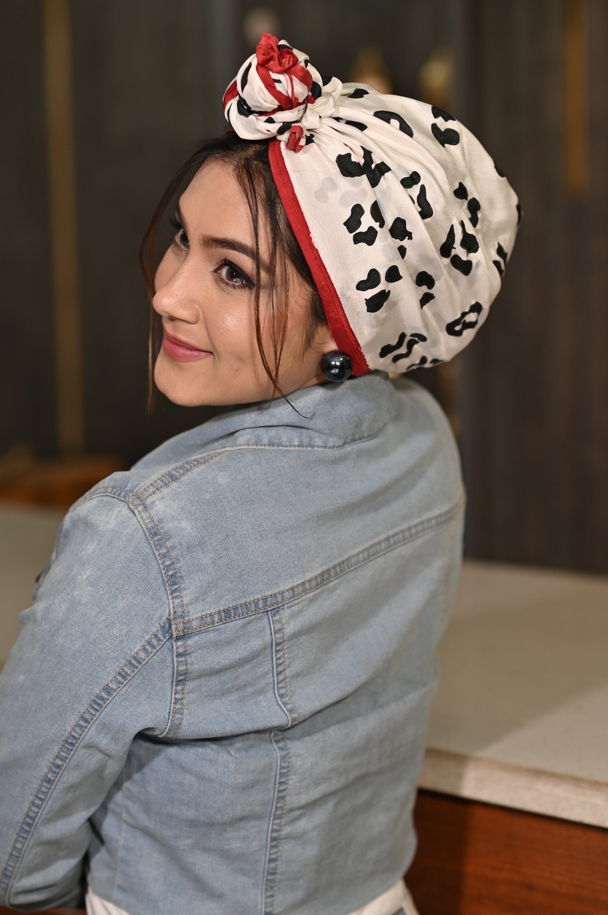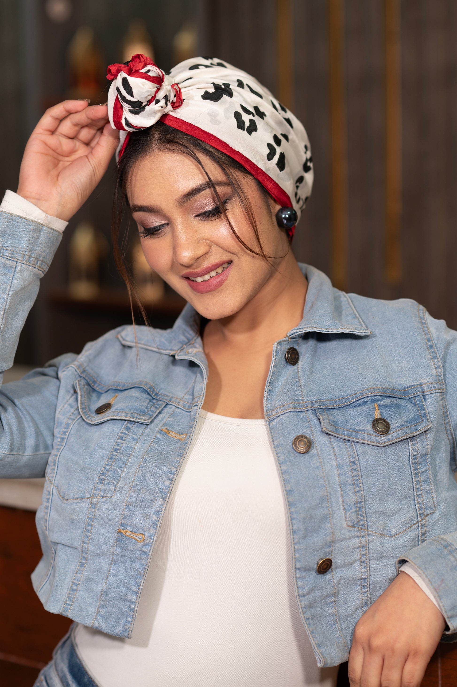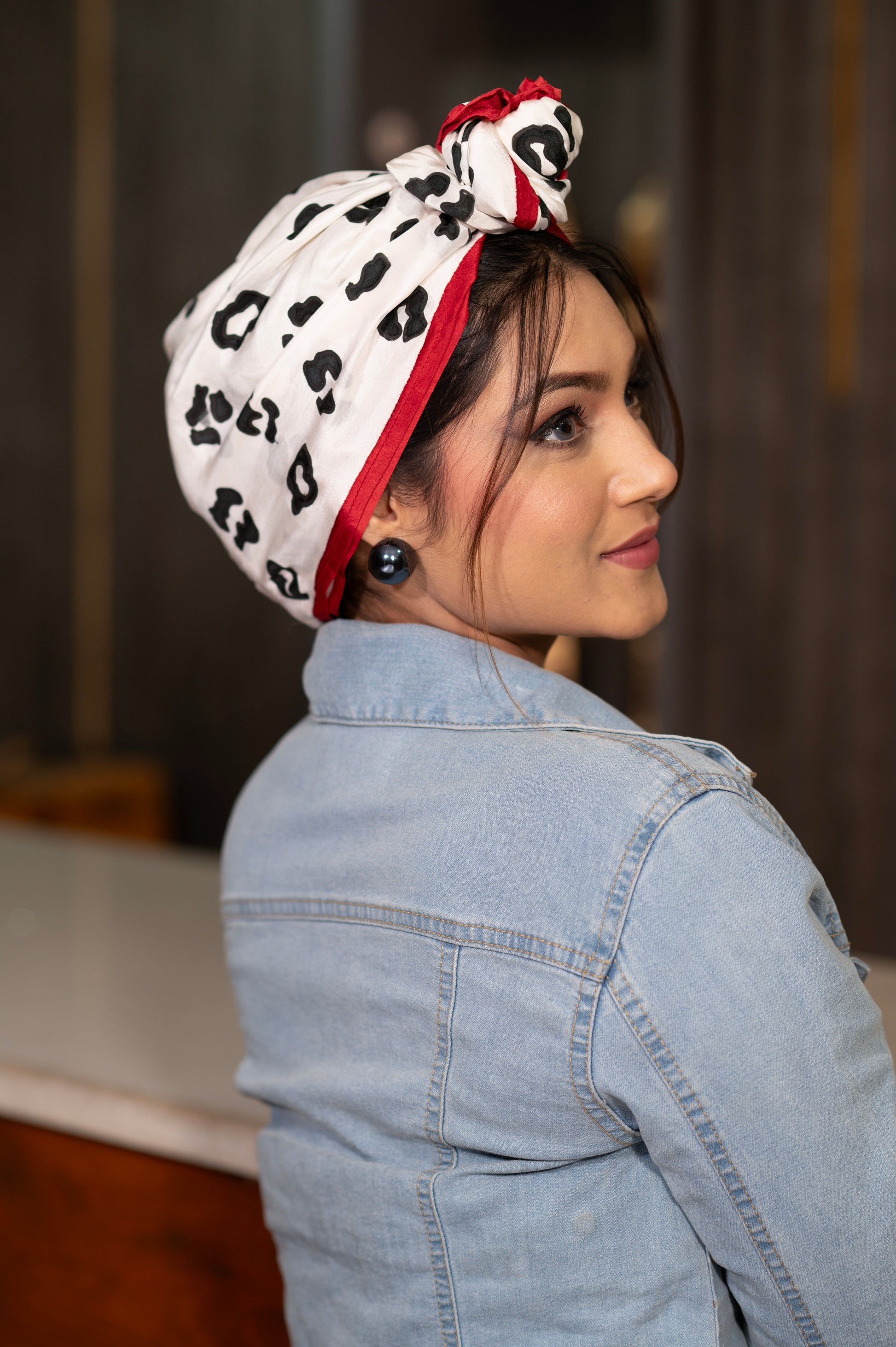 Unleash your bold side with this striking handpainted silk scarf, featuring a timeless leopard design in a classic black and white palette. The monochrome artistry is elevated with a vibrant red border, adding a fresh and modern twist to this statement piece.