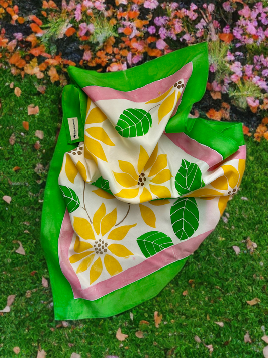 Her signature style is all about fearless creativity; her love for unconventional colour palettes and abstract strokes result in striking, one-of-a-kind hand painted silk pieces. With an insatiable drive to innovate, she thrives on pushing creative boundaries by constantly seeking new styles and techniques; ensuring each creation is as fresh and unique as the last.